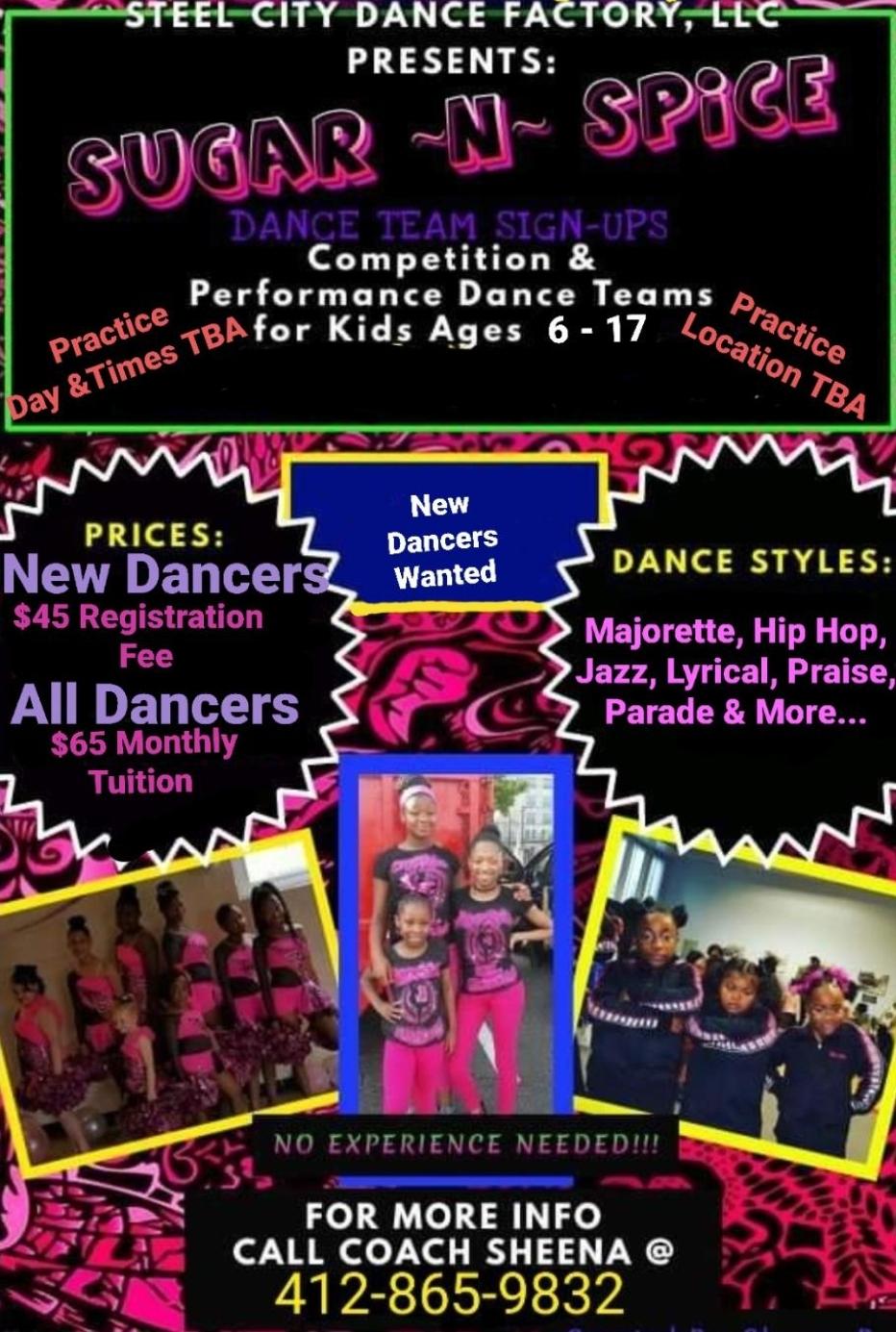 We are Steel City Dance Factory. We are a local Dance Company made up of different dance teams for kids ages 6-17. We are a program that helps our local youth to build self-esteem and gain confidence; and with these skill our youth become strong leaders on and off the Dance Floor.